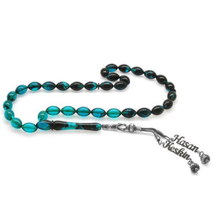 1000 Carat Double Kazaz Tassels Barley Cut Turquoise Fire Amber Rosary with Name Written - EFENDINA PAZAR - Tesbihane - 101001919