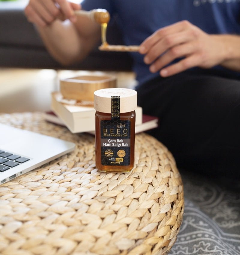 BEE'O Pine Honey can be used as a natural sweetener in a variety of foods and drinks, such as tea, yogurt, and bread. It can also be consumed on its own to enjoy its health benefits, which include enzymes and minerals that support immunity and overall wellness.