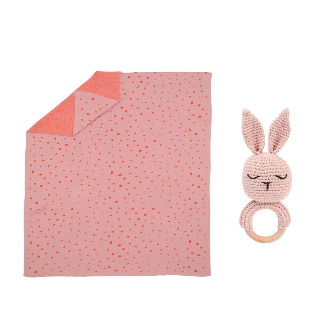 Vendor:BABOOPatterned Blanket Ring Rabbit Set Pink