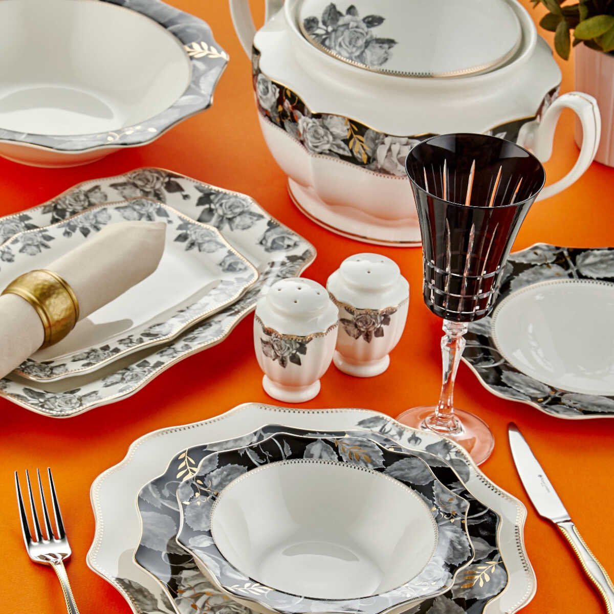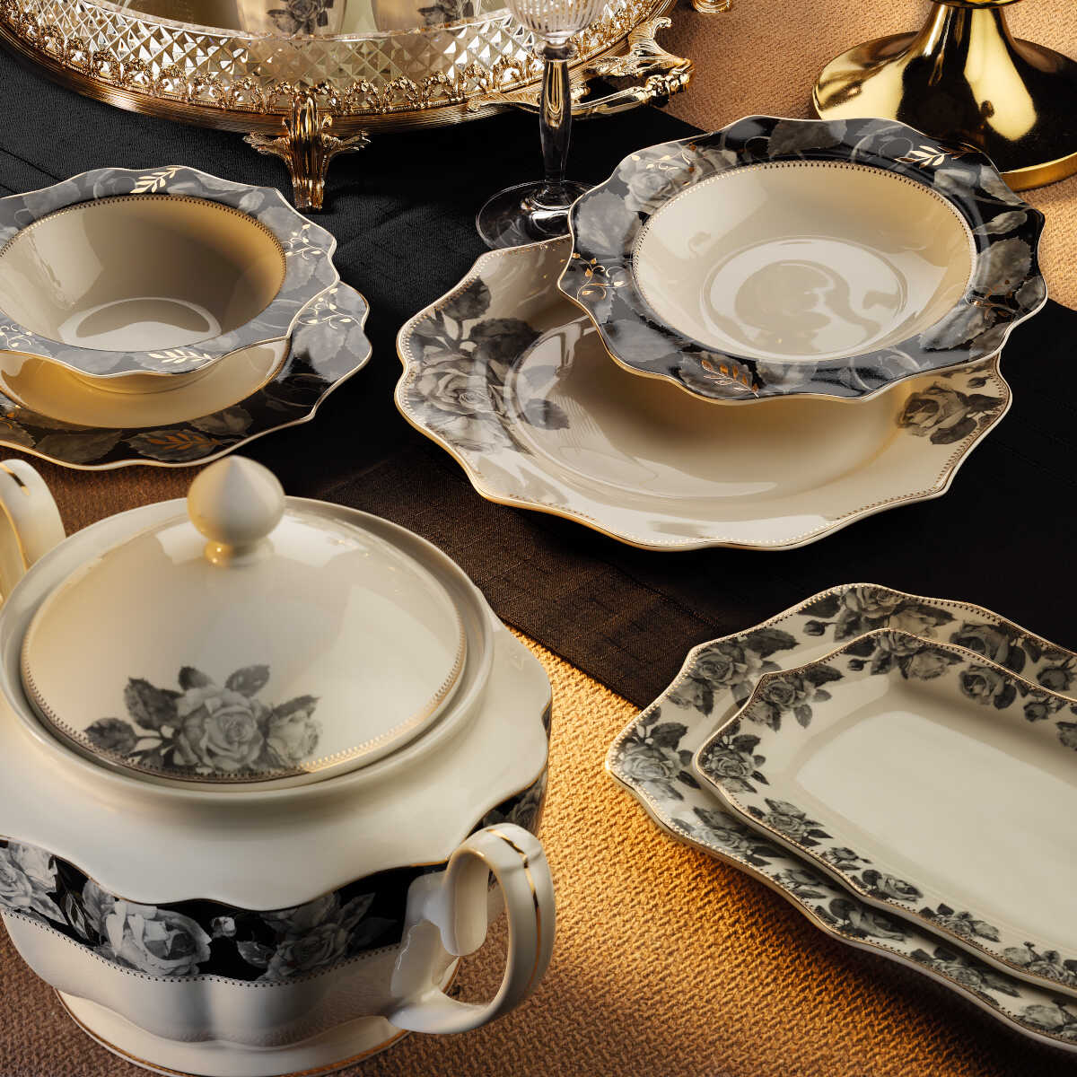 • Royal London Amanda Gold 60 Piece Dinner Set for 12 Persons