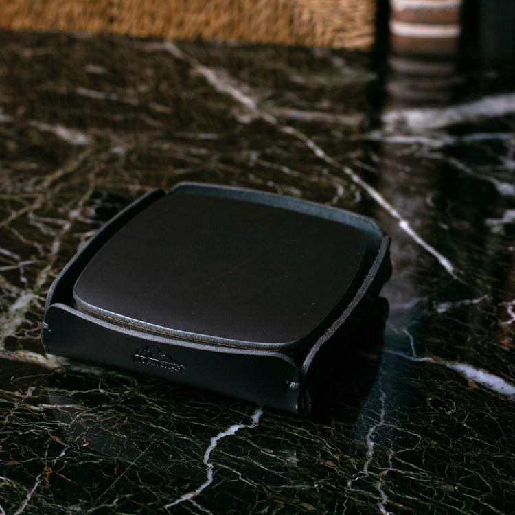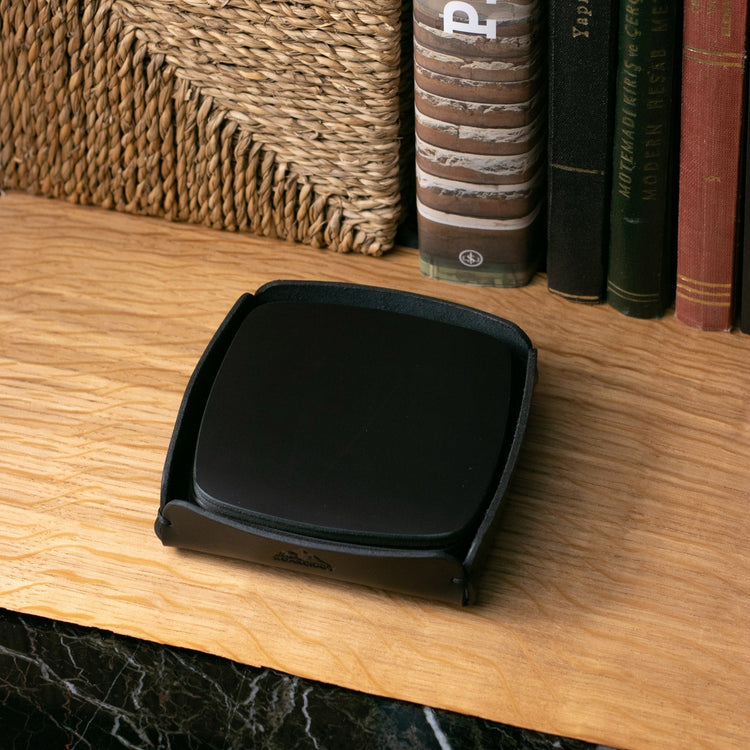 Designed for convenience, these leather coasters are easy to clean—simply wipe them clean with a damp cloth. When not in use, they can be neatly stacked in their included leather tray, optimizing space and keeping your surfaces organized.