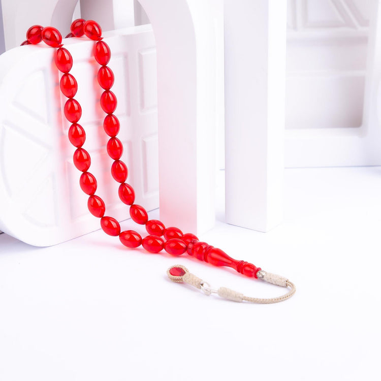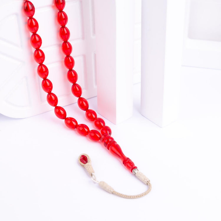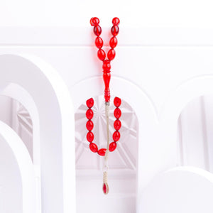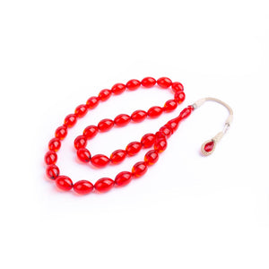 1000 Carat Silver Red Fire Amber Rosary with Kazaz Tassels