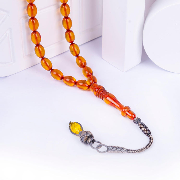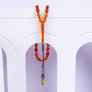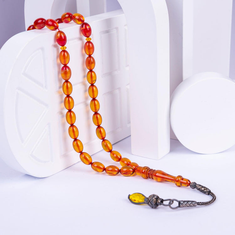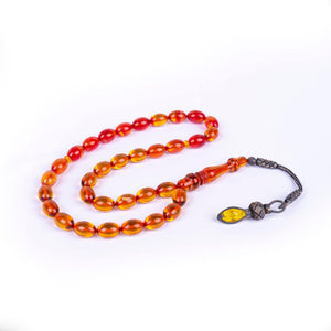 1000 Carat Silver Yellow-Red Fire Amber Rosary with Kazaz Tassels