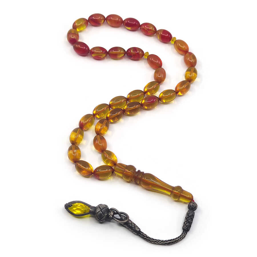 1000 Carat Silver Yellow - Red Fire Amber Rosary with Kazaz Tassels - EFENDINA PAZAR - Ve Tesbih - vealisveris - Z290
