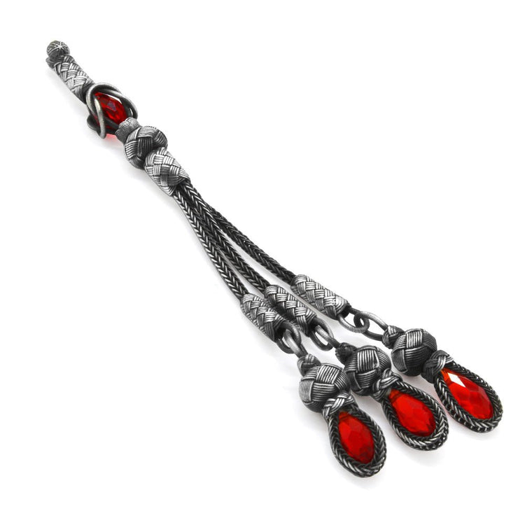 Introducing our 1000 Sterling Silver Kazaz 3 Tassel with Red Zircon Stone, crafted with stunning detail and quality. This elegant piece is sure to add a touch of glamour