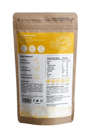 Experience the unique flavor and health benefits of our Kuru Yeşil Dried Orange. Made from 100% natural oranges, our 50 gr pack is rich in vitamin C and antioxidants. Enjoy a tasty and nutritious snack on the go or add it to your favorite recipes for a burst of citrusy goodness.