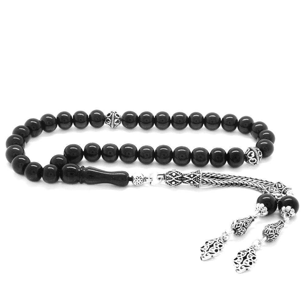 925 Sterling Silver Double Tasseled Sphere Cut Russian Oltu Rosary - EFENDINA PAZAR - Tesbihane - 101001974