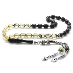 Contrary to popular belief, pressed amber is not a substance obtained by processing amber powders. The production of this valuable substance, which emerged from the interaction of amber stone with other substances, first started in the 1700s. Pressed Amber is as valuable as real amber today. It is preferred over real amber due to its cost. It is the most demanded type of rosary.