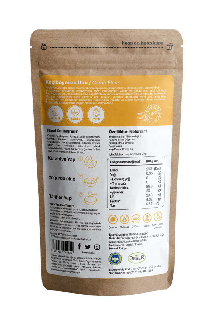 Kuru Yeşil Kuru Yeşil Organik Keçiboynuzu Unu 250 gr