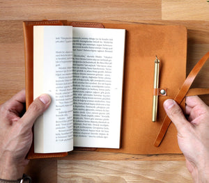 Kitaplarınızı El Yapımı Deri Kitap Kapağımızla koruyun ve kişiselleştirin! En kaliteli deriden yapılmış her kapak, benzersiz ve şık bir dokunuş için ustalıkla elle işlenmiştir. Favori kitaplarınızı bozulmamış durumda tutun ve kitaplığınıza lüks bir dokunuş katın. Kitap severlerin vazgeçilmezi!